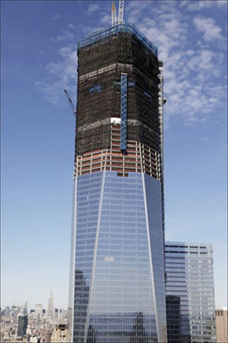 Let’s face it, The Freedom Tower is an epic fail of skyscraper proportions. It’s a trite name. (It’s so lame, they’re quietly going about a re-branding–before it even opens–to One World Trade Center.) It’s got trite features (including ultimately standing at 1776 feet tall upon completion of the spire. More on that in a moment.) In response to the devastating attacks of September 2001, it’s a towering symbol of cowardice and compromise.