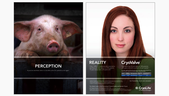 But wait…there’s more. It’s not just that this ad directly lifts this concept. Boyd Communications, based in Shrieveport, LA, used the same (exact) concept for their client CryoLife to demonstrate that most people’s perceptions about age and cardiac valve transplants are wrong. Does it work to crystallize the point? Yes, extremely well. And while there’s nothing new under the sun in advertising, they could have used that helpful, “hey there’s more to know about this subject” approach without using the same exact words, no?